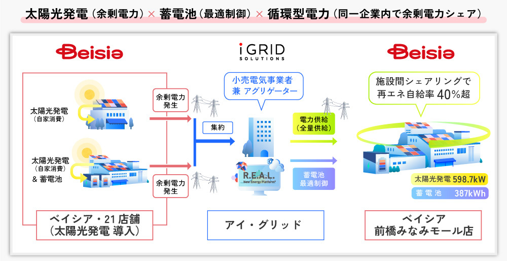 ベイシア、アイ・グリッドと連携し前橋みなみモール店で太陽光発電と蓄電池を導入 店舗間の余剰電力融通で再エネ比率40%を実現へ