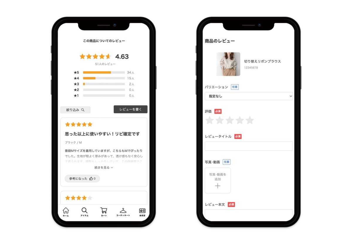 商品詳細ページ内で、購入者の生の声であるレビューを確認できるだけでなく、アプリから直接レビューを投稿することも可能になります。