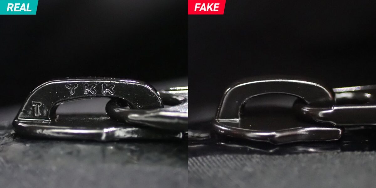 真贋ポイントとしては、偽造品の特徴として、フロント部分やポケットに使用されているファスナーにブランド刻印が入っていないものが多く見られます。また、本体に施される始祖鳥の刺繍にも違いが現れやすいことが特徴的です(ただし、年式や商品によって刺繍の形状は異なります)。