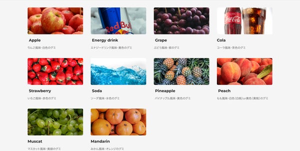 グミの主な原材料は、水飴・砂糖・ゼラチン・澱粉加工品・酸味料・香料・色素・乳化剤・光沢剤です。