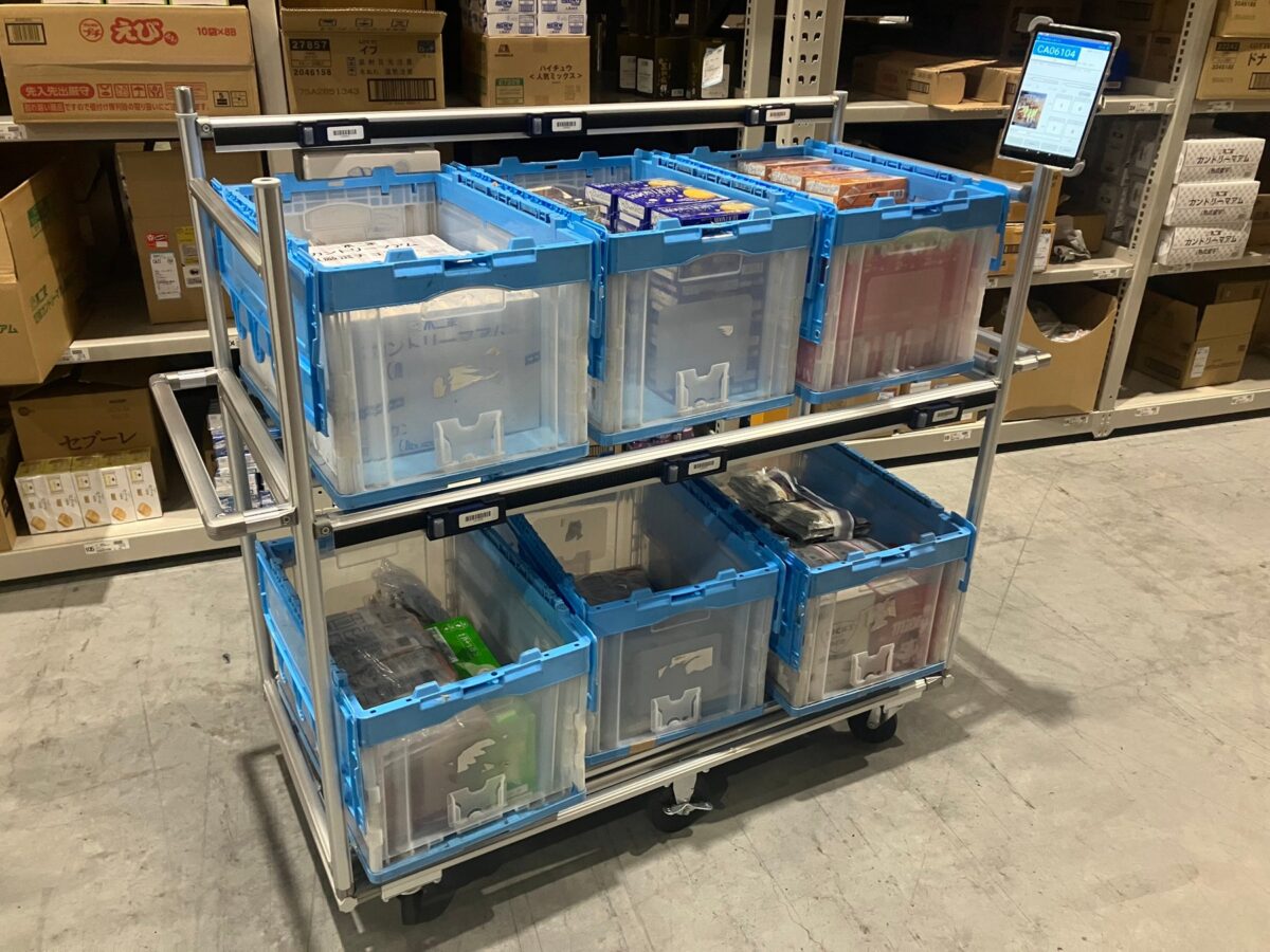 このシステムの導入により、バラ商品のピッキングの生産性を向上させるため、複数のオリコンを一つのマルチ台車にまとめて作業を行うことが可能です。