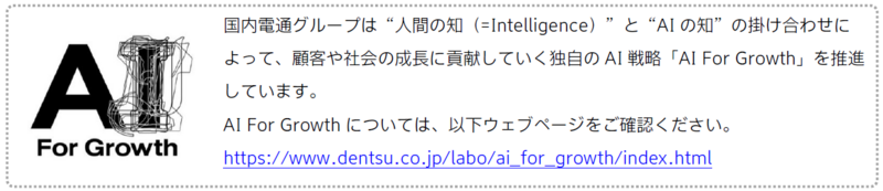 AI For Growth Fan Marketing:電通社内でAIを活用したプランニングサービス系におけるファンマーケティング領域を示す総称です。