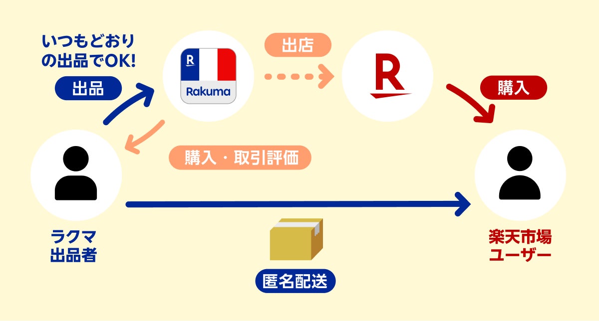 また、この仕組みでは出品者と購入者の双方が住所などの個人情報を伏せたまま取引することが可能になります。商品が購入者の元に届くと「楽天ラクマ」が購入者に代わって受取確認と取引評価を行うため、購入者は通常の「楽天市場」でのお買い物と変わらない体験ができるとしています。