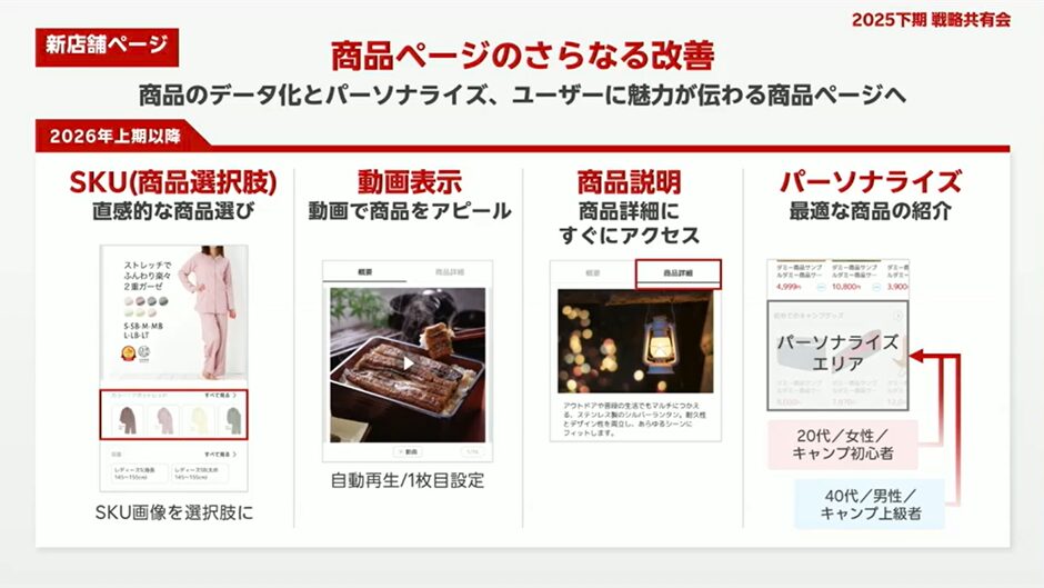 2026年上期以降、楽天市場では商品ページUIの複数の改修が予定されています。選択肢表示の視覚化、動画のファーストビュー配置、説明文のタブ化などは、ユーザー体験の向上につながる一方、従来のページ構成が通用しなくなる可能性もあります。店舗側は「どこに何を書けば伝わるか」を再設計する必要があります。UI変更は一時的な対応ではなく、継続的な改善を前提に捉えることが重要です。