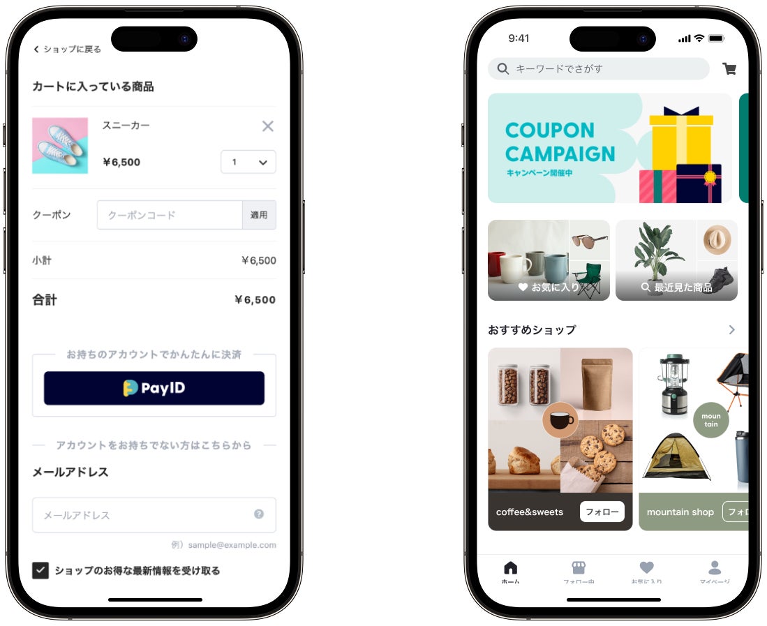 Pay IDは、ネットショッピングでのスムーズな決済体験と、新しい商品との出会いや好きなショップでのリピート購入をサポートする購入者向けショッピングサービスです。