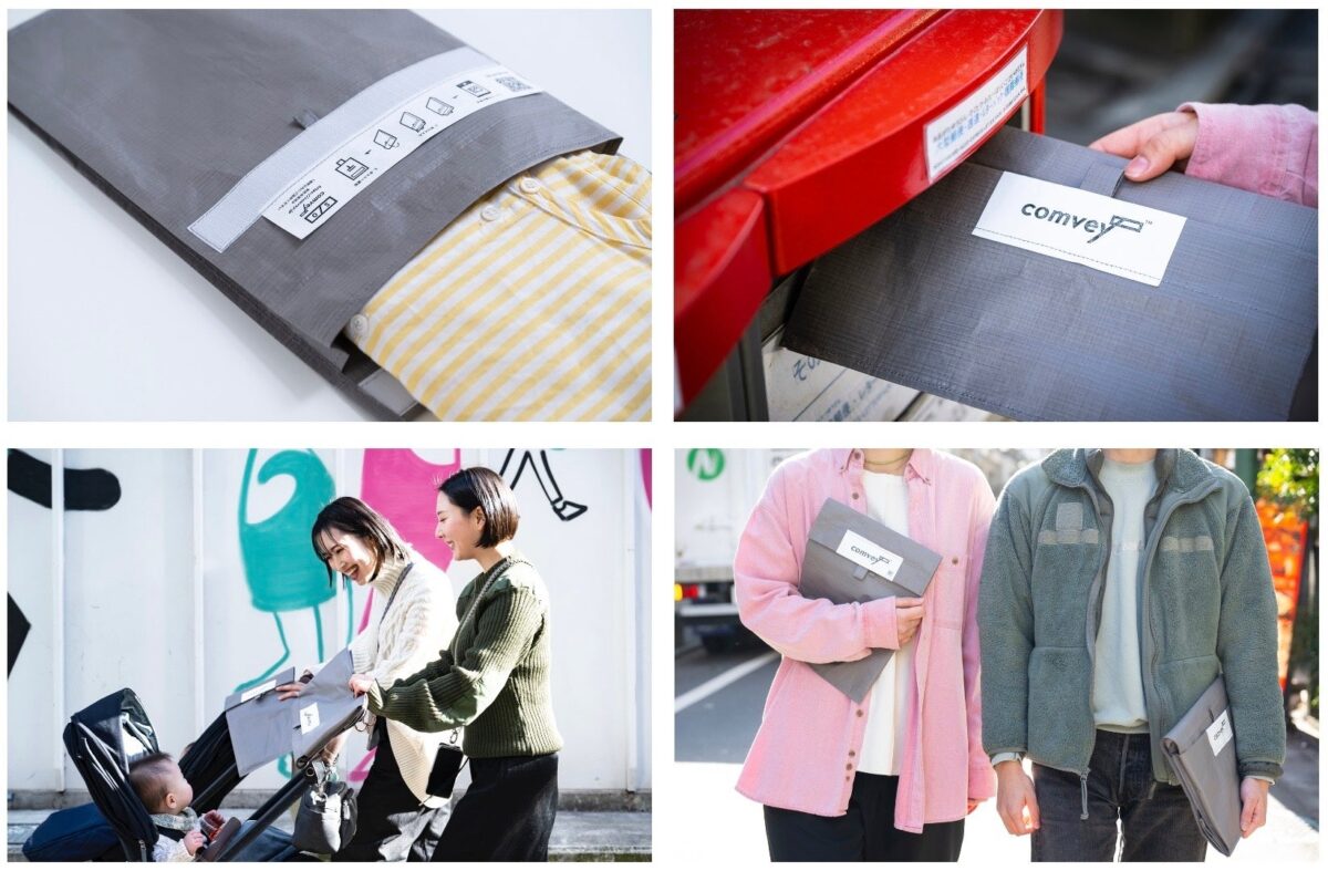 comveyのシステムが導入されたECカートでは、消費者は梱包方法を段ボール等の通常の方法にするか、シェアバッグにするかを選択することができます。届いたシェアバッグはポストに投函するだけで返却が可能で、返却確認が完了すると消費者はクーポンを獲得できます。comveyへ返却されたバッグはクリーニング・修繕が施された後、再びEC事業者へと提供される仕組みとなっています。