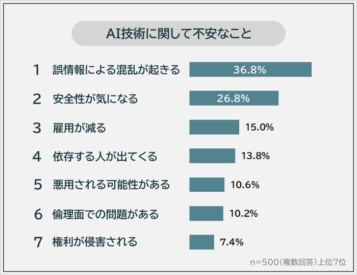 AI技術に関する不安の1位は「誤情報による混乱が起きる」