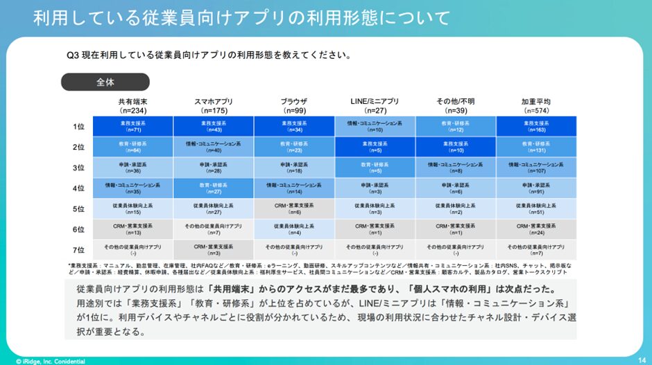 優先順位の問題もあると思いますが、従業員向けアプリの有用性をもっと周知していく努力が、われわれアプリ事業者にも求められているということでしょう。肝に銘じておきます。