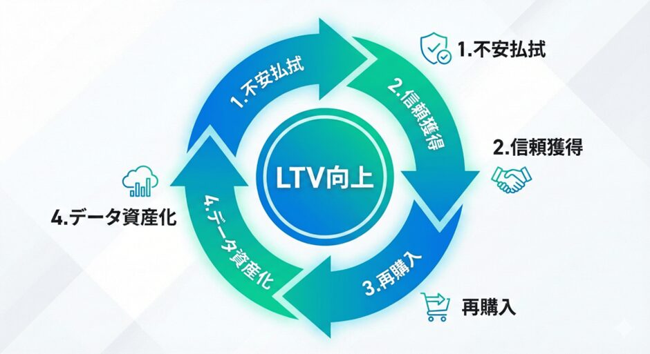 「トラブルがあっても安心できる」という信頼感を醸成し、次の購入ハードルを下げてリピート率を向上させる。