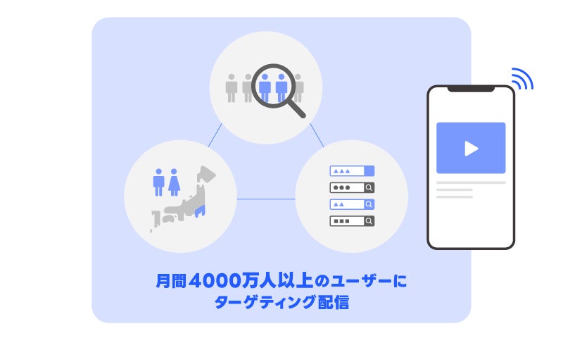 同社が保有する豊富なターゲティング設定を活用することで、月間4,000万人以上のユーザーに対して幅広くアプローチすることが可能です。この数値は、「インストリーム広告」において2025年10月10日から11月10日までの1ヶ月間でターゲティング可能だったユニークユーザー数の実績に基づいています。