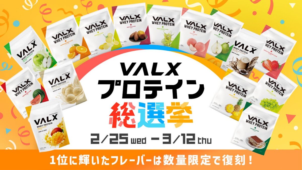 ファンの投票によって全15種類の「VALX ホエイプロテイン」の中から1位が決定され、1位に選ばれたフレーバーは、数量限定で復刻販売される予定となっています。