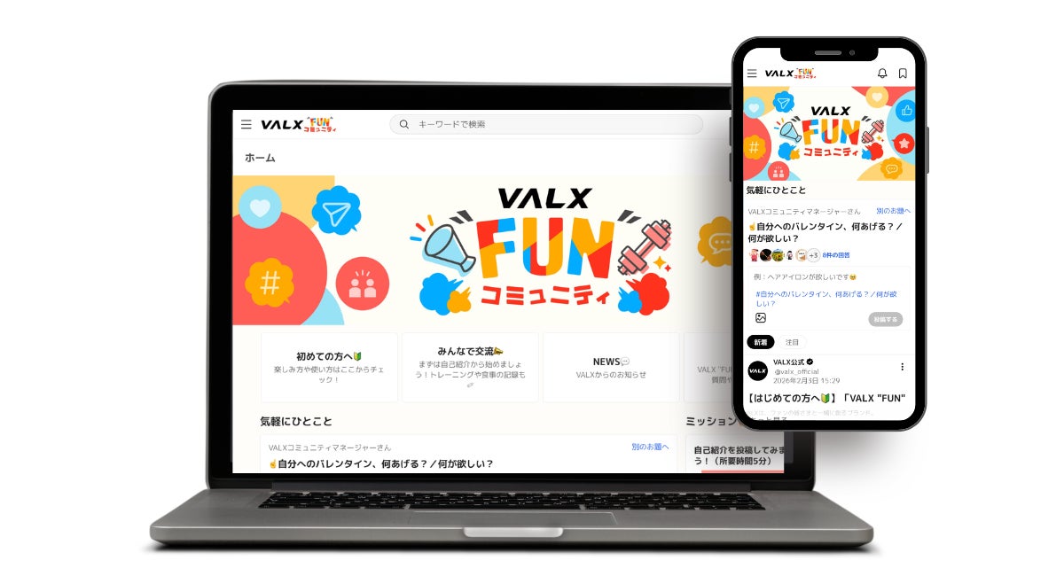 「VALX "FUN" コミュニティ」は、無料の会員登録を行った顧客が、共通の目標を持つ「仲間」として集い、交流やコンテンツを通じてブランドをより深く体験できる場として提供されています。