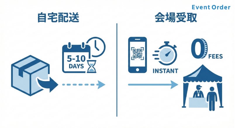 購入者側のメリット:会場での受取となるため「送料の負担がゼロ」となり、購入のハードルが大きく低下します。