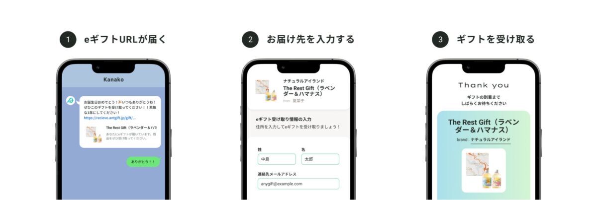 eギフトURL経由で住所を入力するだけで商品が届く仕組み