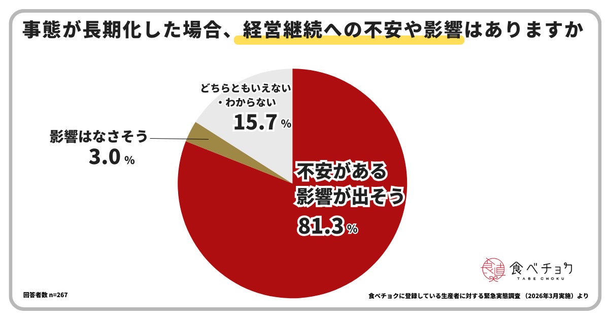 長期化した場合、経営継続への不安や悪影響を感じる生産者は81.3%