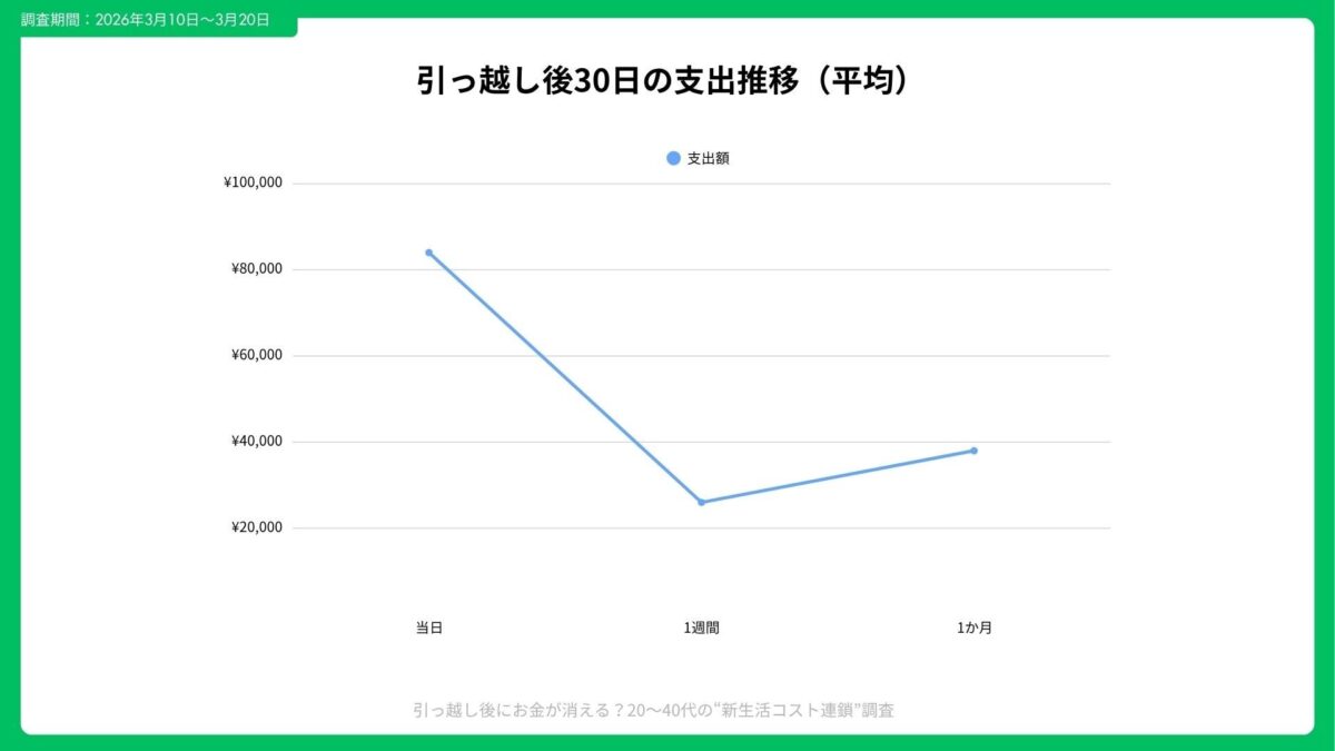 引っ越しを終えてから30日間で発生する支出を時系列で見ると、段階的に増加していく傾向が確認されました。