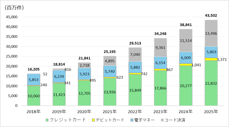 クレジットカード中心の構造は継続、コード決済の存在感も拡大