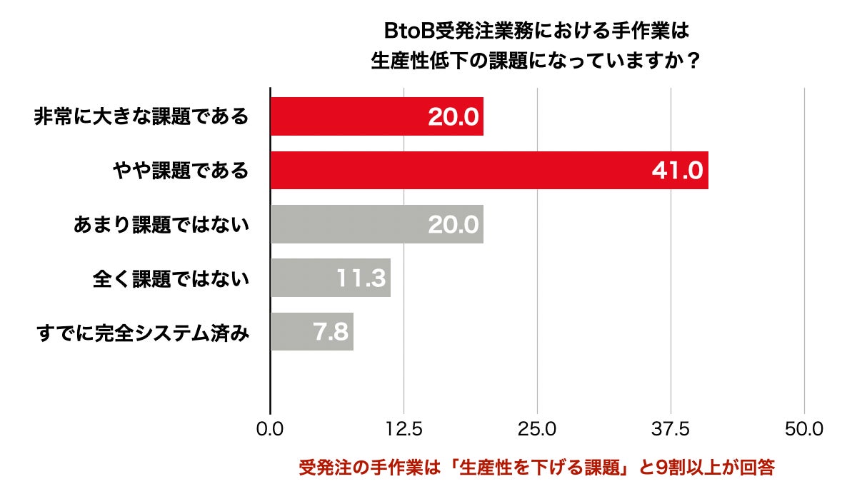 政府が主導するデジタル・トランスフォーメーション(DX)の推進が喫緊の課題となっていますが、企業間取引(BtoB)の分野では、受発注業務のデジタル化が思うように進んでいない現状が明らかになりました。BtoB ECおよび受発注システムに関するコンサルティング事業を展開する株式会社ウキヨが、BtoB受発注業務に従事する400名を対象とした実態調査を実施しました。