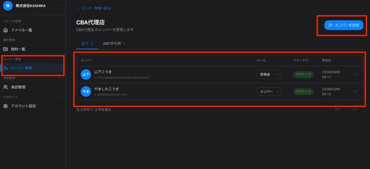 CRごとに関係者の確認ステータスがリアルタイムで表示されます。「承認済み」「修正中」「未確認」といった状態が視覚的に把握でき、代理店とクライアントそれぞれの承認状況も明確に区分されて表示される仕組みです。