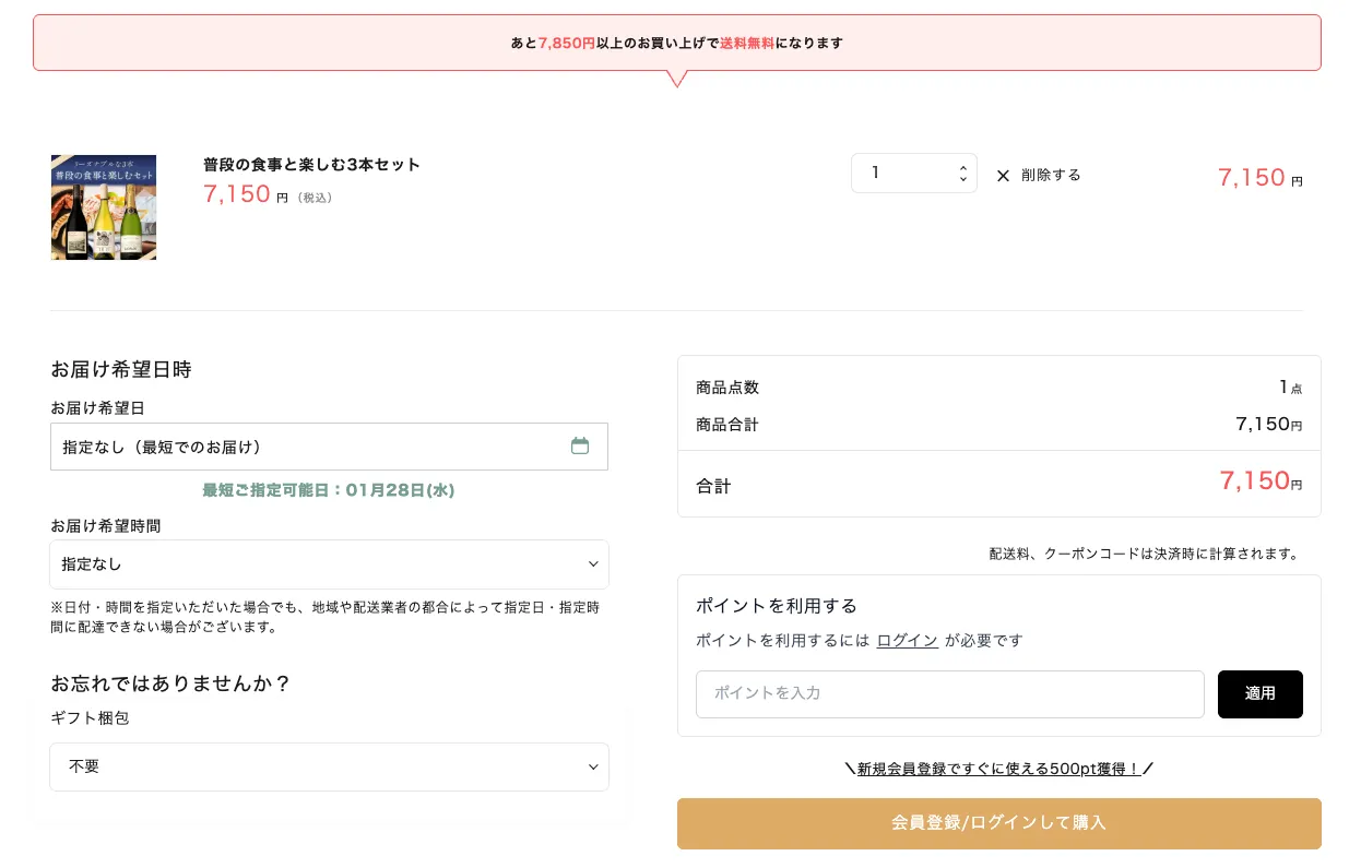 例えばサントリーグループの「カーヴ・ド・リラックス」では、商品ページやカート内で会員登録のメリットを直感的に訴求し、未会員ユーザーの取りこぼしを防いでいます。