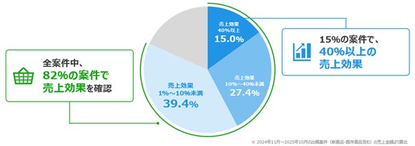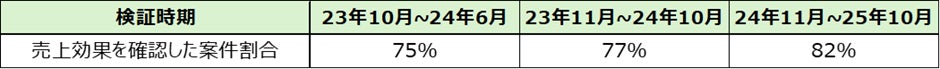 全案件中77%の案件で売り上げ効果が確認されていましたが、現在は82%に向上しています。