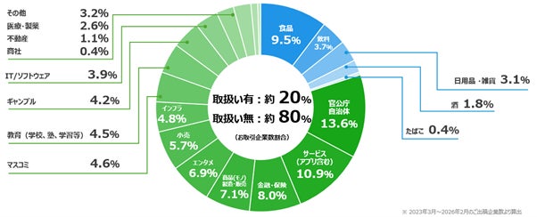 多様なカテゴリーの企業に活用されており、ファミリーマートで商品の取扱いがない企業の出稿が2023年3月から2026年2月の期間において約8割に向上しました。