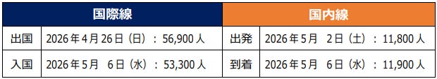 2026年度ゴールデンウィーク期間の国際線旅客推計値
