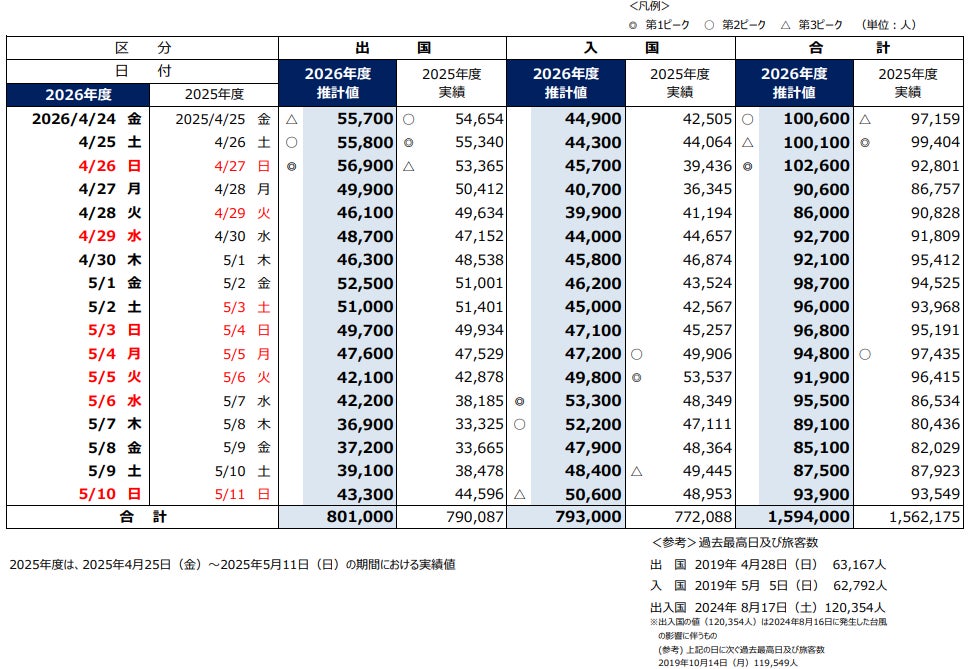 成田国際空港株式会社は、2026年のゴールデンウィーク期間における成田空港利用旅客数の推計値をまとめ、発表しました。
