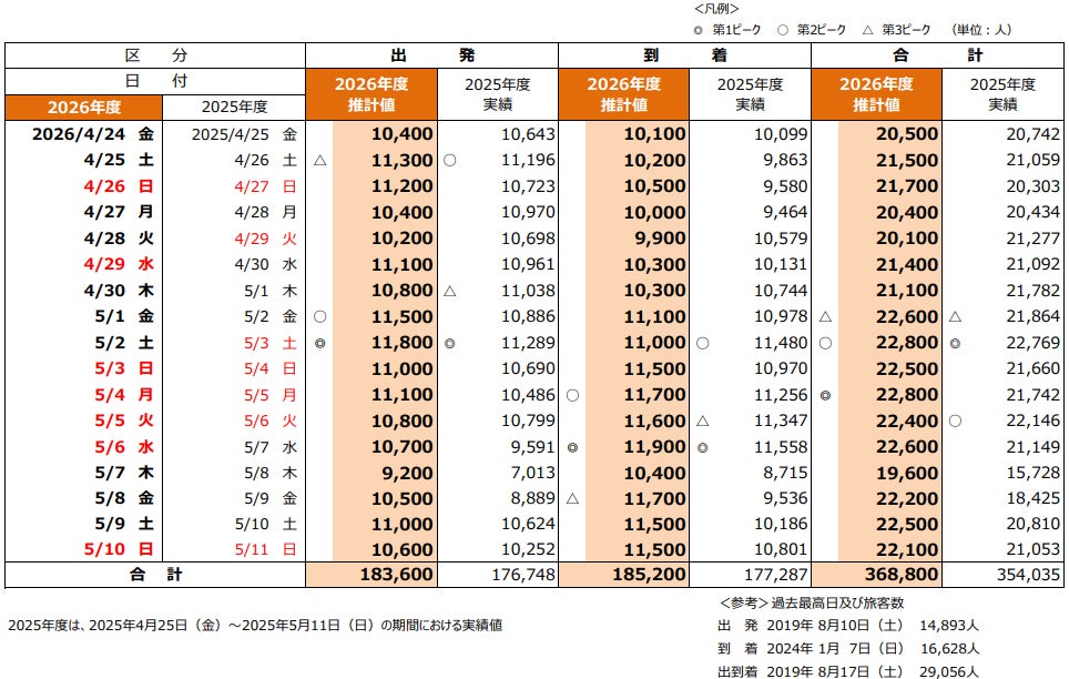 2026年度ゴールデンウィーク期間の国内線旅客推計値