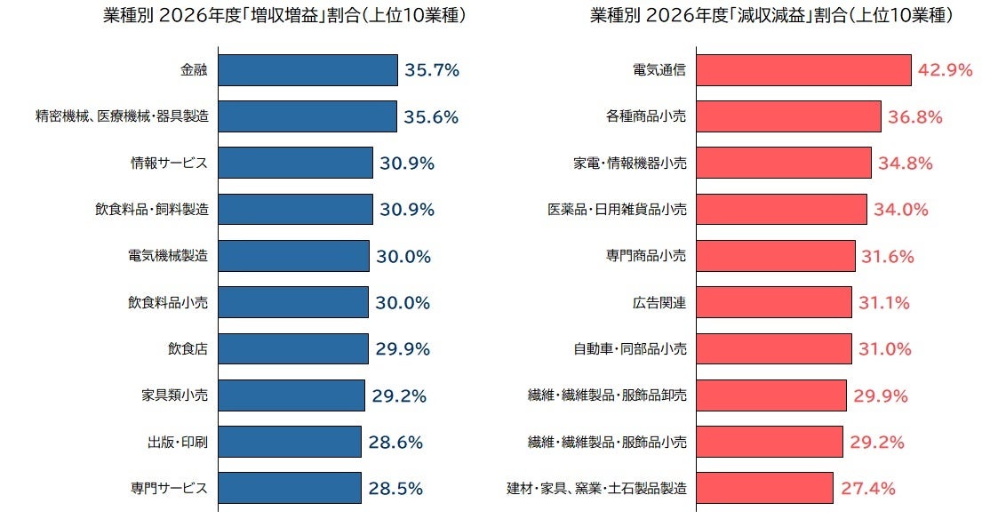 株式会社帝国データバンクは、全国の2万3,349社を対象として、「2026年度の業績見通し」についてのアンケート調査を実施しました。この業績見通しに関する企業意識調査は2009年3月から毎年継続して実施されており、今回が18回目となります。