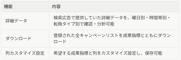 - 検索広告とディスプレイ広告の成果を同一水準の統合レポートで確認可能