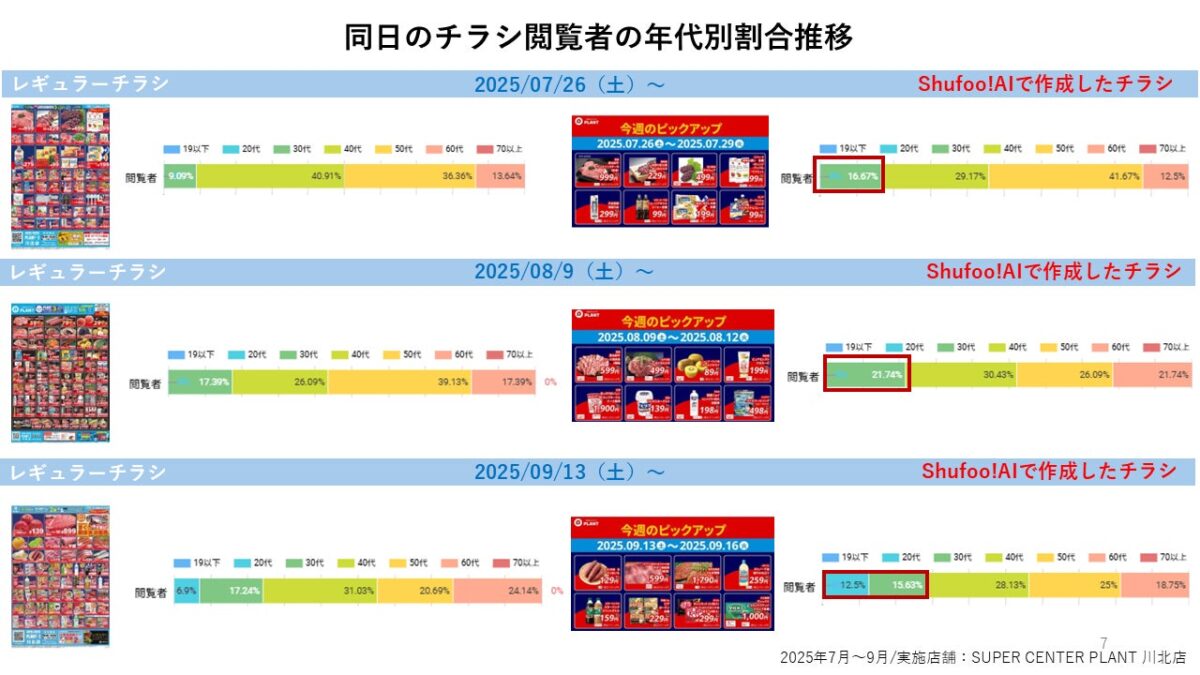 実証実験の結果、最小限のリソースで「レギュラーチラシ以外」の集客施策を展開することが可能となり、未実施期間と比較して20〜30代の閲覧数が多いという傾向が確認されました。