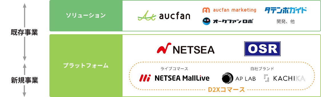 既存の事業としては、相場検索サービス「オークファン」およびBtoB取引プラットフォーム「NETSEA」を運営しており、安定した収益基盤を構築しています。