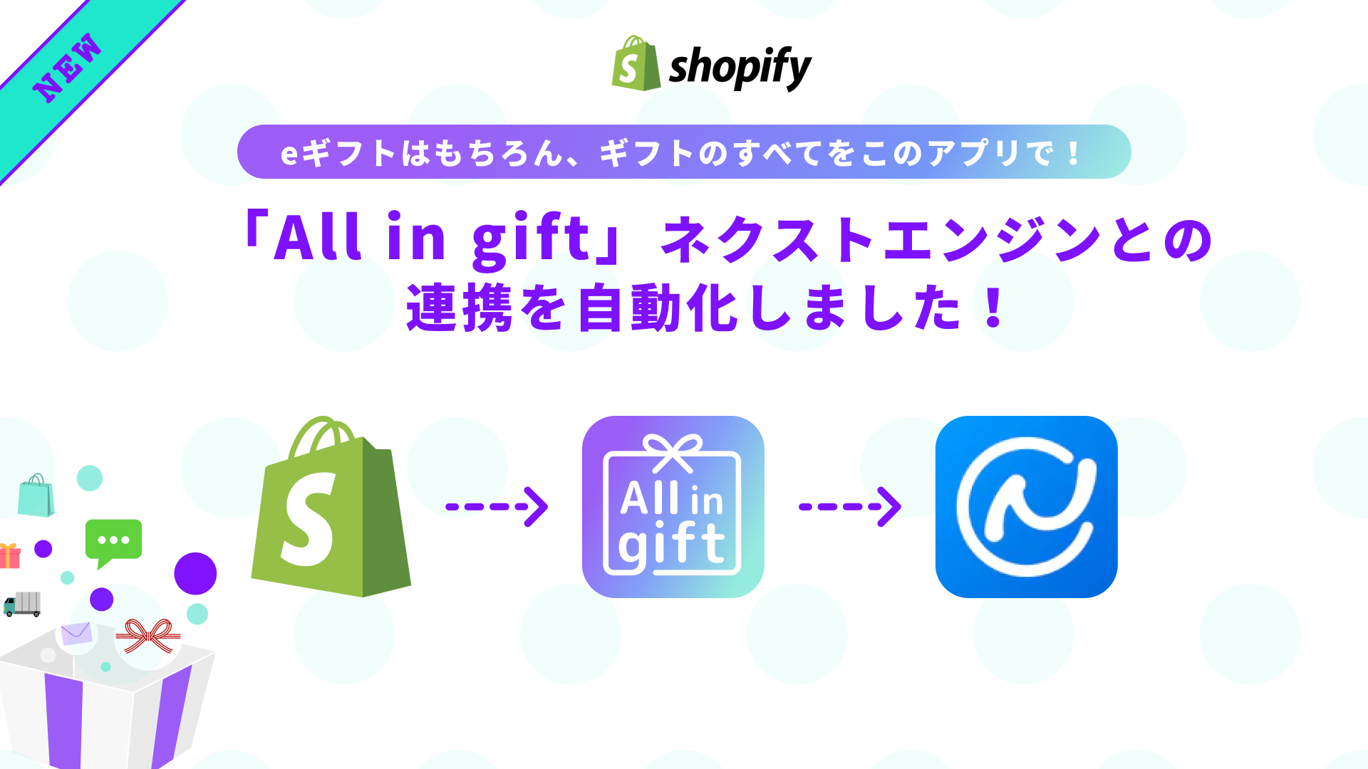 業界情報・プレスリリース Shopify アプリ「All in gift」、ネクストエンジンとの連携機能をリリース 2022年8月9日 株式会社ハックルベリー(東京都渋谷区、代表取締役社長:安藤 祐輔、以下「ハックルベリー」)が提供する、住所を知らなくても受け取りURLをDMで送るだけで贈り物を届けられる...