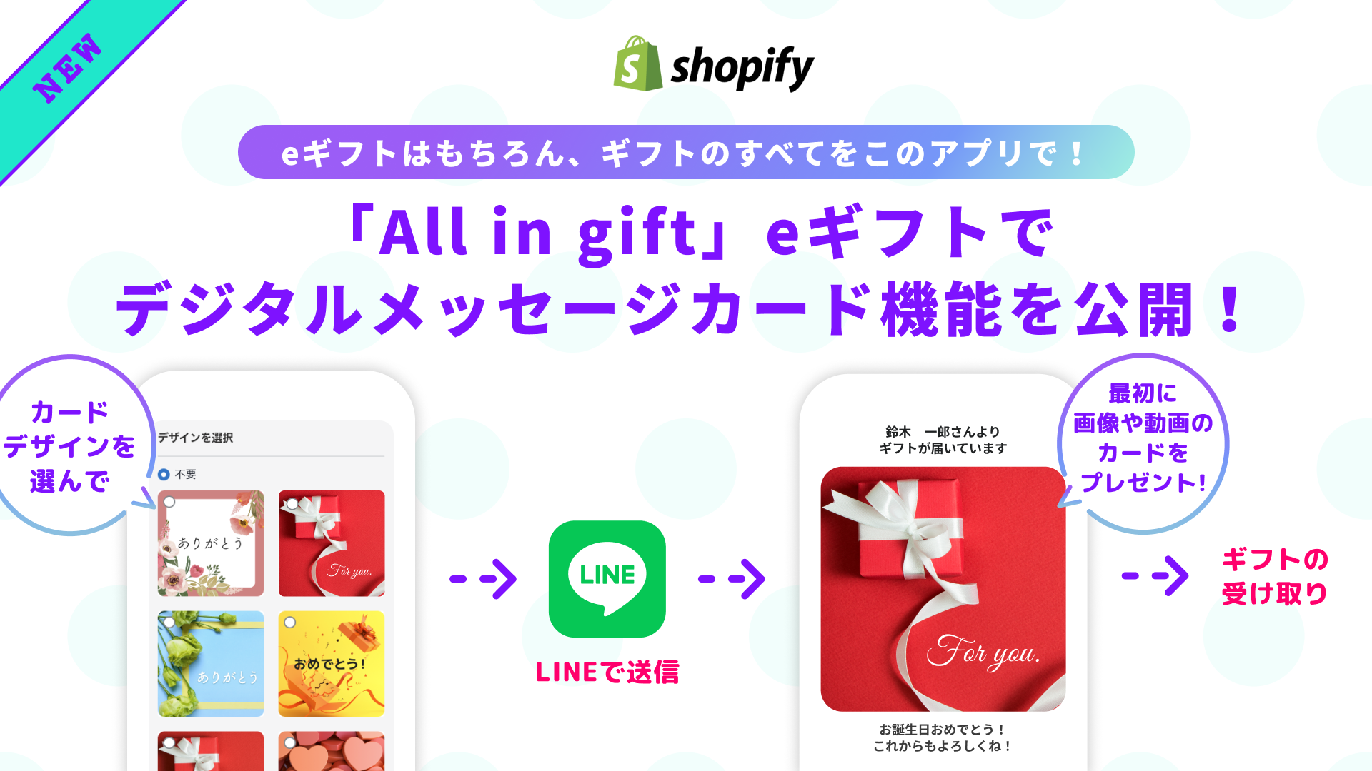 業界情報・プレスリリース Shopifyアプリ「All in gift」、メッセージカード機能の追加 2022年8月3日 株式会社ハックルベリー(東京都渋谷区、代表取締役社長:安藤 祐輔、以下「ハックルベリー」)が提供する、通常ギフトはもちろん、住所を知らなくても贈れるeギフトに対応したSh...