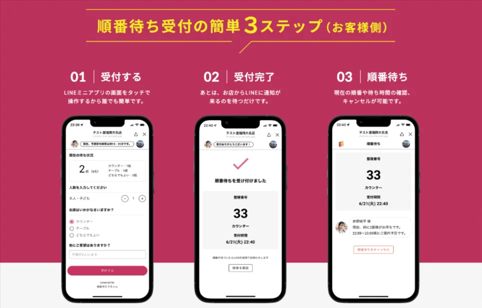 業界情報・プレスリリース チューズモンスター、LINE上の順番待ちシステム「順番待ち子ちゃん」を新サービスとして開始 2023年1月23日 LINE上の順番待ちシステム「順番待ち子ちゃん」と言う名前の通り、店舗の順番待ちの受付・発券・呼出をするサービスです。 株式会社チューズモンスター(本社:福岡県福岡市中央...