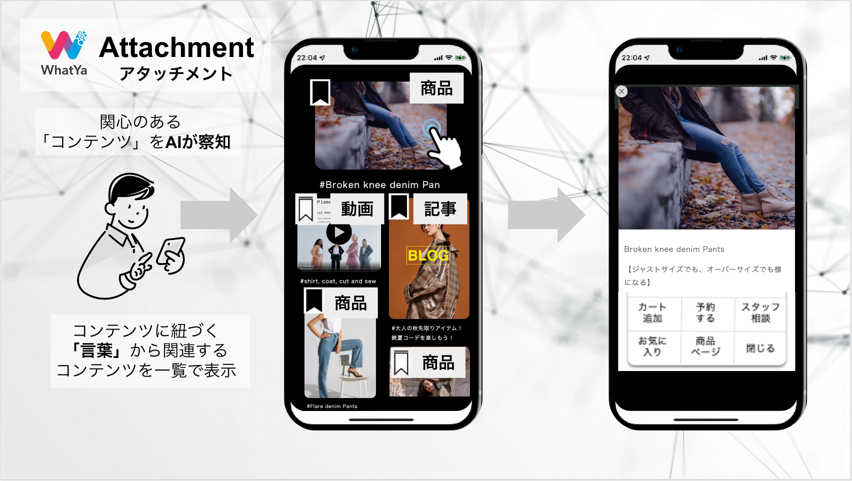 業界情報・プレスリリース 【ECサイトに直感的なUXを実現】サイト、Instagram、YouTubeのコンテンツを集約し、AIがお客様の関心を察知・表示する新機能「アタッチメント」をリリース! 2022年11月16日 株式会社空色(東京都品川区 代表取締役:中嶋洋巳)が、提供するWEB接客ツール「WhatYa」(ワチャ)が新機能「アタッチメント」をリリースしました。SNSやウェブサイト...