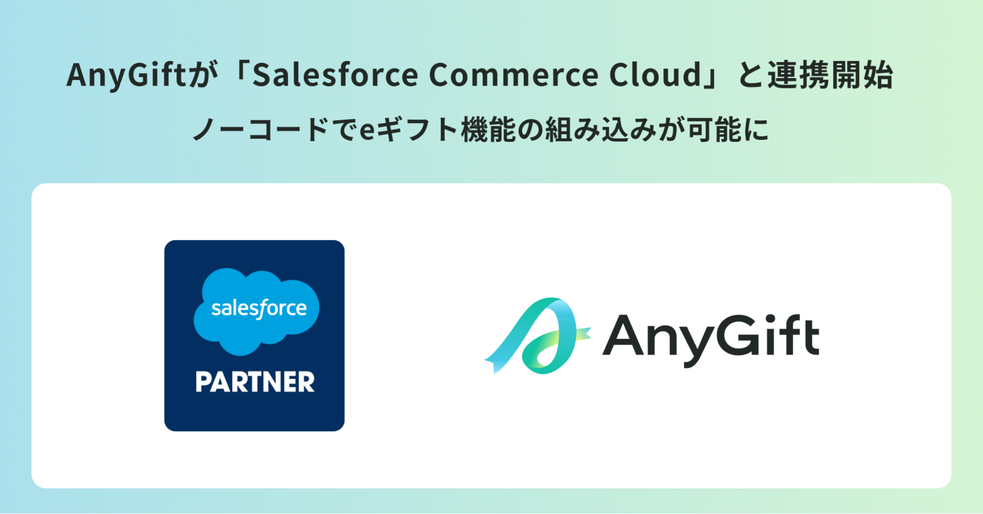 業界情報・プレスリリース AnyReach AnyReachのeギフト機能「AnyGift」がSalesforce AppExchangeに登場!手軽にギフトが贈れる新サービス 2024年11月7日 AnyReach株式会社(本社:東京都中央区、代表取締役:中島 功之祐)が本日、Salesforce AppExchangeにて「AnyGift」を発表しました。この新機...