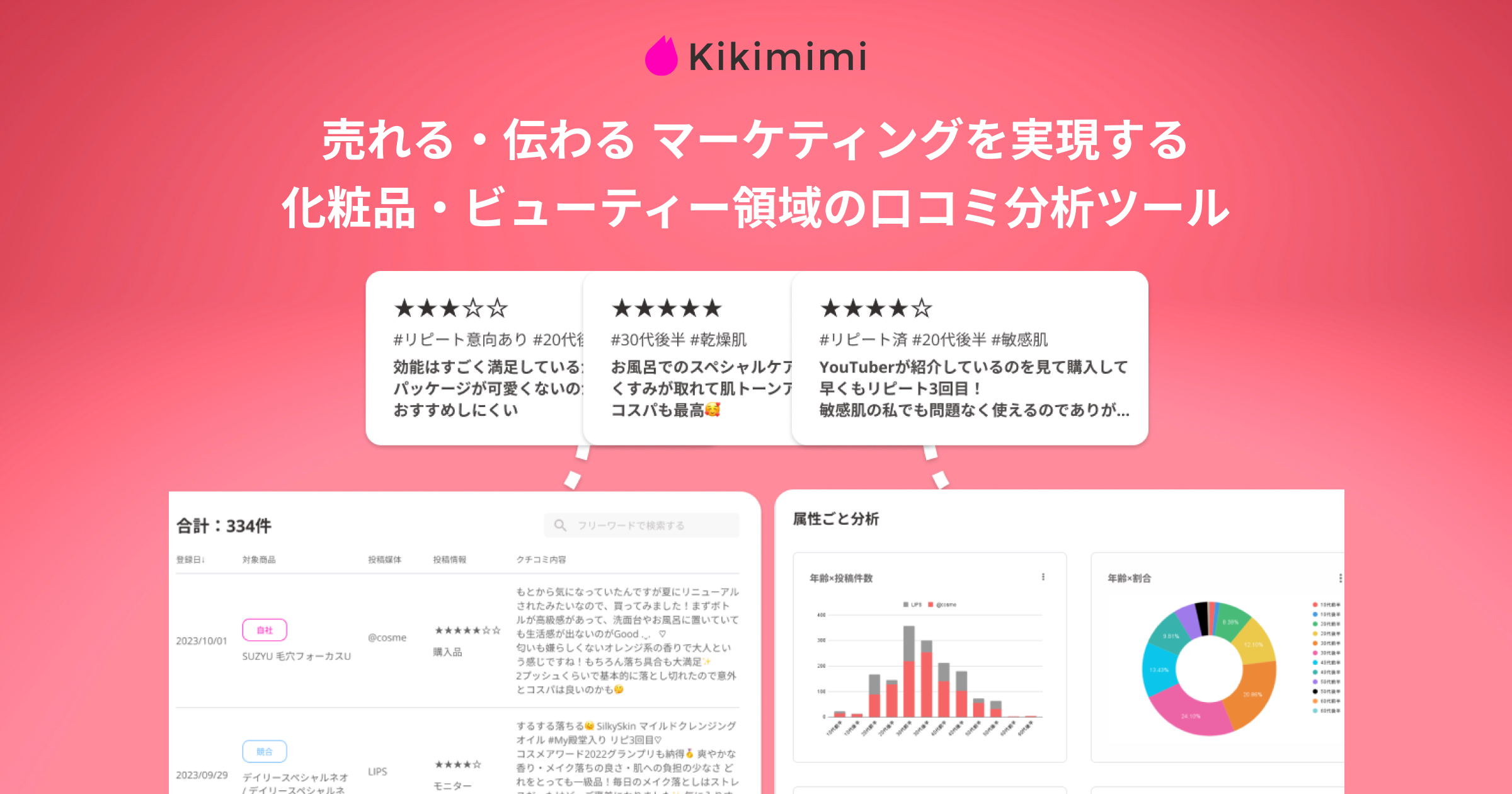 業界情報・プレスリリース Cuez 化粧品領域のマーケティングDXツール「Kikimimi」β版開始。口コミ分析で売上やマーケティング結果の背景を把握し、次の一手を 2024年3月12日 株式会社Cuezは化粧品領域の口コミ分析ツール「Kikimimi」(キキミミ)のβ版を公開したことをお知らせいたします。 Kikimimiは、化粧品領域において購買意思決...